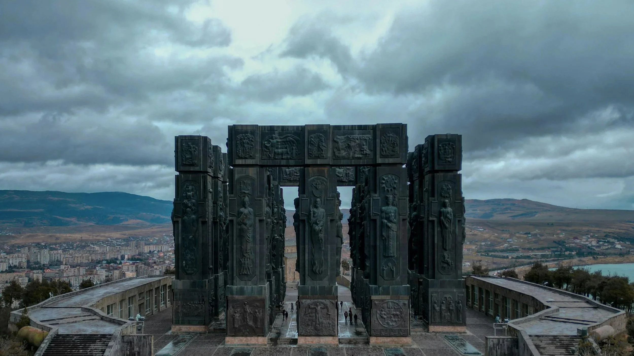 A striking hilltop spot with massive stone columns, incredible views over Tbilisi, and a quiet, almost surreal atmosphere that feels both powerful and peaceful.